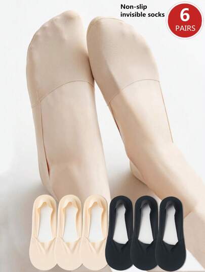 6雙純色隱形襪女士無顯襪防滑踝襪 - 彩色 - 查看 6
