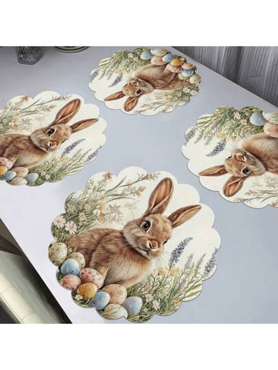 6 件/4 件/1 件复活节派对装饰圆形桌垫,兔子和复活节彩蛋图案设计 - 15 英寸亚麻材质,防滑,耐热,可机洗,节日派对装饰圆形桌垫,直径 15 英寸,派对厨房餐厅装饰,复活节餐桌装饰,适用于派对、厨房、酒店、晚宴 - 彩色 - 查看 4