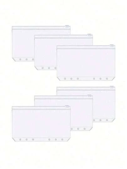 6个A5/A6/A7透明PVC拉链收纳袋,6孔可替换内芯袋,适用于计划本和活页夹,透明PVC拉链信封收纳袋