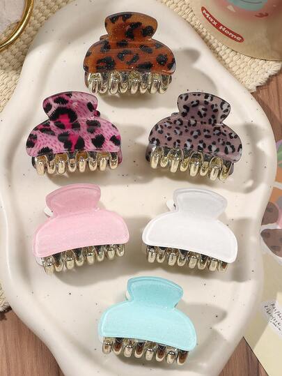 6个豹纹发爪夹,可爱小巧,用途广泛,适合秋冬季优雅发饰、花朵发夹、夏季度假发夹。