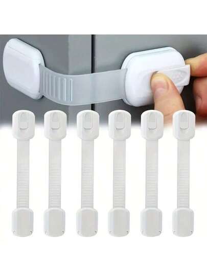 6件婴儿橱柜锁,7.4英寸*1.4英寸,白色,适用于抽屉、冰箱、洗衣机、架子、橱柜、壁橱、烤箱、垃圾桶,可调节多功能锁,无需粘合剂