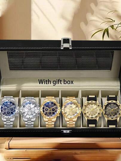 6只/盒 男士时尚钢带派对/场合手表,男士礼物 - 彩色 - 查看 1