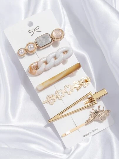 6入組人造珍珠裝飾髮夾 - 彩色 - 查看 5