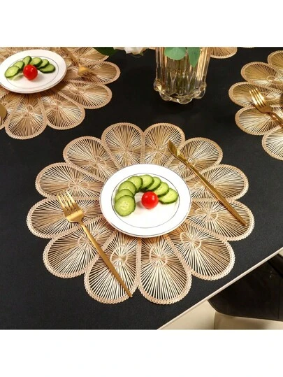 6 件装金色圆形隔热防滑桌垫,可洗 PVC 餐垫,适用于家庭、酒店和餐厅 - Golden Placemats - 查看 6