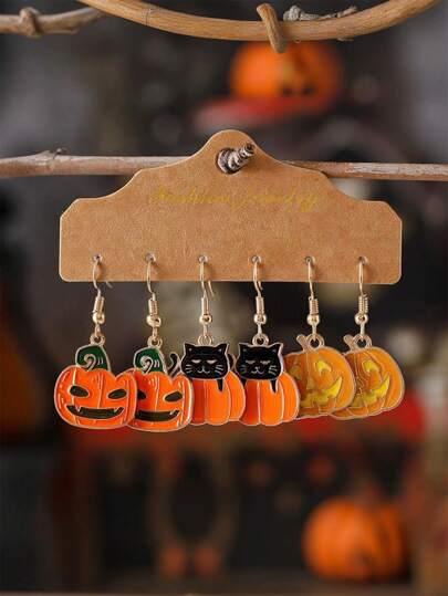 6 件万圣节南瓜和黑猫吊坠耳环,创意有趣的节日配饰 - 萬聖節耳飾 - 查看 1