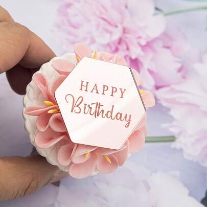 6个六边形生日快乐亚克力纸杯蛋糕装饰插牌 - 彩色 - 查看 7