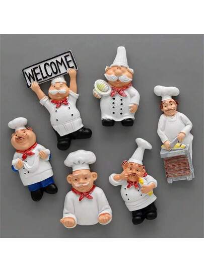 6 件裝,廚房廚師冰箱貼,卡通冰箱貼,3d 磁性貼紙,冰箱裝飾,可愛的東西,廚房裝飾系列,家居裝飾,房間裝飾,生日禮物 - 白色 - 查看 6