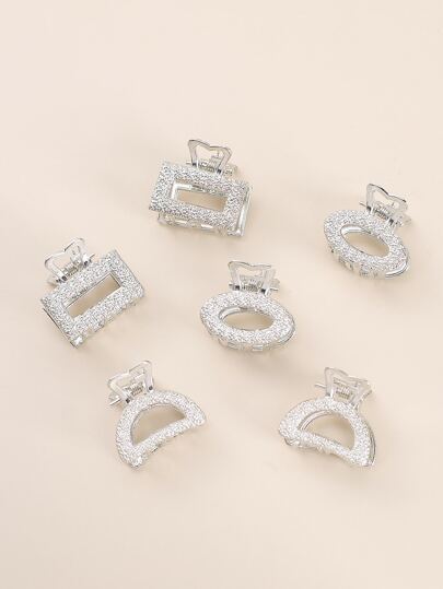 6 件金属迷你几何发夹,适合女士日常派对金色头饰发夹发夹发夹发夹,学校用品,学院秋冬发夹发饰,适合女士度假装扮 - 銀色 - 查看 1