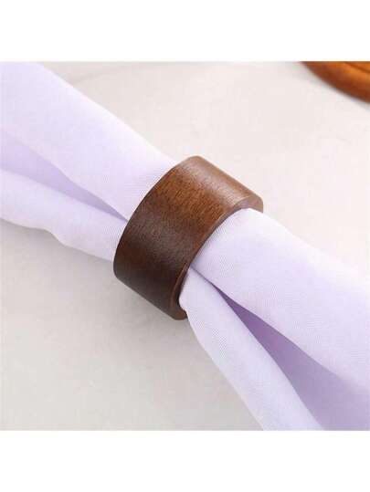 6 件简约实木餐巾环,用途广泛且时尚,适合桌面、酒店、餐厅用餐 - 棕色 - 查看 1