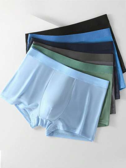 6条装男士纯色真丝平角内裤,男士内衣 - 彩色 - 查看 6
