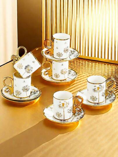 6 件套卡布奇诺咖啡杯碟、带金边碟子的陶瓷咖啡杯、土耳其咖啡杯、6 件套浓缩咖啡杯碟 - 彩色 - 查看 14