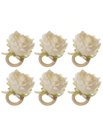 6pcs/Set Elegant Fresh Mori Simulation Rose Napkin Rings Twine Napkin Rings, Suitable For Weddings, Birthday Parties, Graduation, Christmas, Daily Table Decorations, Etc.