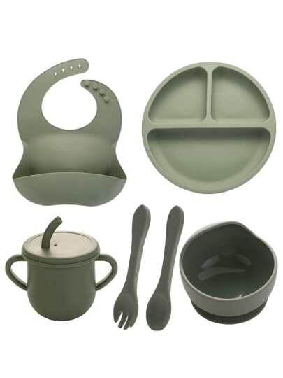 6件套简约硅胶餐具套装,经典绿色婴儿餐具套装 - 軍綠色 - 查看 6