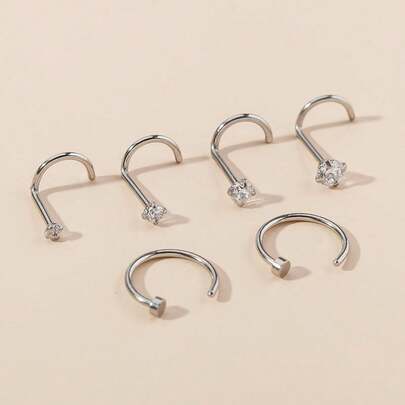 6件套不锈钢氧化锆鼻环和黑色鼻钉 - 銀色 - 查看 6