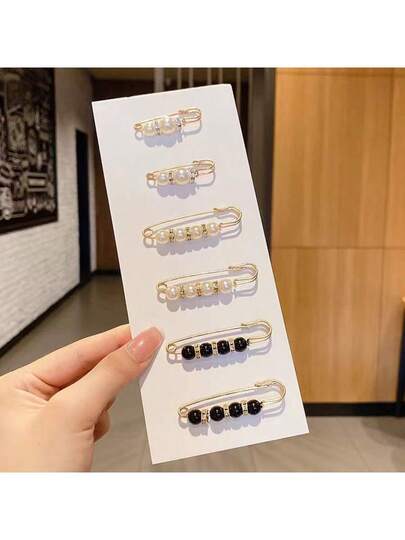 6件腰带夹、衣服扣件、毛衣胸针、珍珠防曝光别针(无卡) - 金色 - 查看 1