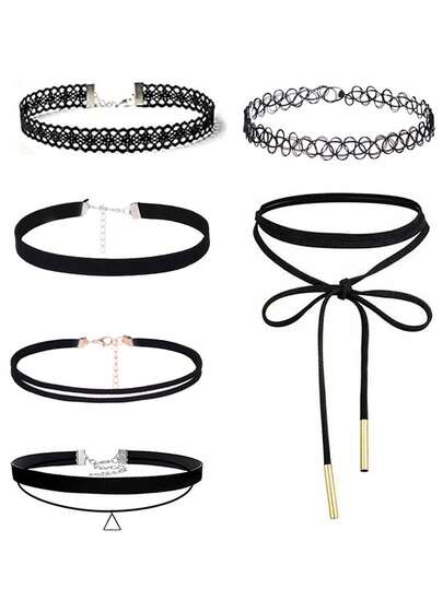 6件套女士极简蕾丝镂空哥特风项链颈链套装 - 彩色 - 查看 6