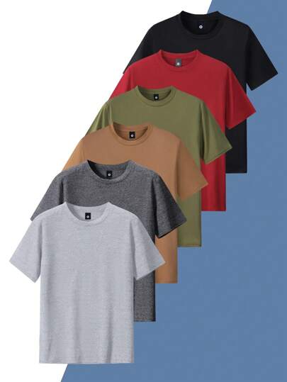 6 件装男士夏季常规款短袖纯色 T 恤,休闲户外穿着 T 恤,适合作为送给丈夫或男朋友的礼物 - 彩色 - 查看 6