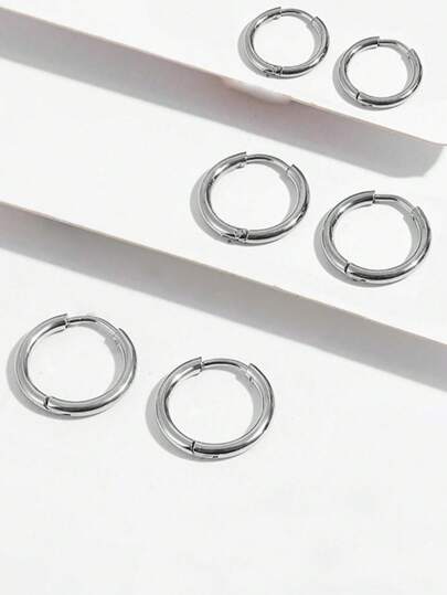 6 件套不锈钢环形耳环,夏季度假风格金色/银色波西米亚风耳环时尚简约耳环,适合男女日常佩戴 - 銀色 - 查看 1
