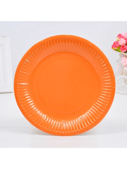 7 英寸普通纸盘,儿童自制一次性彩色圆形纸盘,适合生日派对 - 橘色 - 查看 1