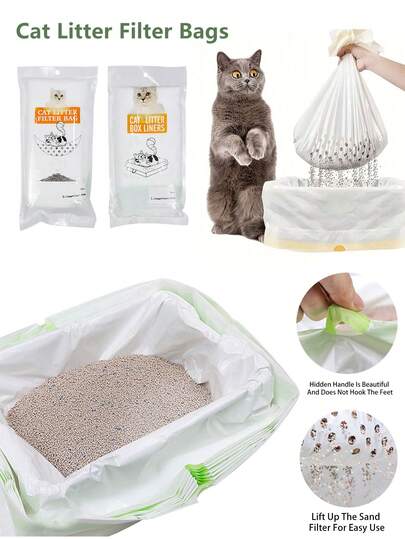 7 件装超大号猫砂内衬袋,猫砂过滤袋,垃圾废物容器,防臭,超厚,弹性抽绳设计,轻松解决猫砂难以清洁的问题,矩形,聚乙烯,适用于所有猫砂盆,可重复使用,方便且无混乱的清洁解决方案 - 彩色 - 查看 11