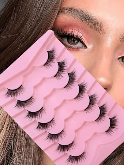 7對半眼睫毛,厚實蓬鬆貓眼式仿蟉羊毛假睫毛,短長捲翹睫毛
