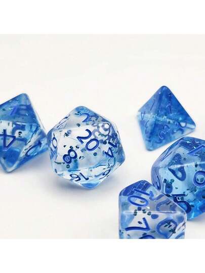 7 件套经典蓝色多面骰子套装,角色扮演游戏骰子,万圣节/复活节/圣诞节礼物,露营必备 - 淺藍色 - 查看 8