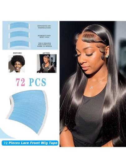 72入組蕾絲假髮胶帶,雙面防水蕾絲假髮粘劑,適用於蕾絲前假髮、假髮、髮片,結合蠟棒和邊緣控制蠟之假髮帶 - 72pieces - 查看 1