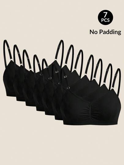 7 件无缝内衣套装,舒适休闲文胸,带可调节肩带 - 黑色 - 查看 1