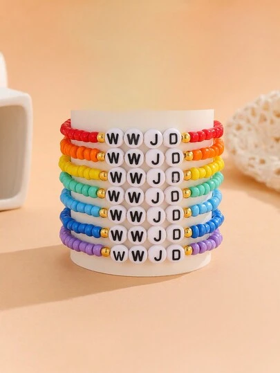 7入組波西米亞風格彩虹珠子手環,適用於女性