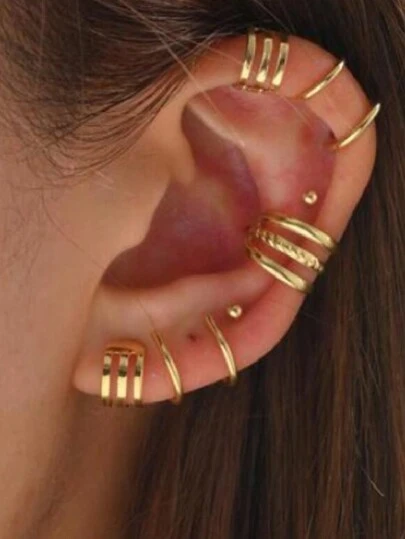7 件/套简约多层耳夹和耳钉,女士时尚珠宝套装 - 金色 - 查看 1