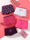 5件装 女童/学生 心形和棋盘格印花 舒适棉质内裤
