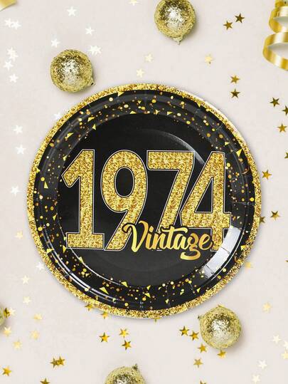 8入組7英寸黑金快樂50歲生日紙盤,一次性餐具,50歲生日派對用紙盤,桌面裝飾 - 50歲 - 查看 5