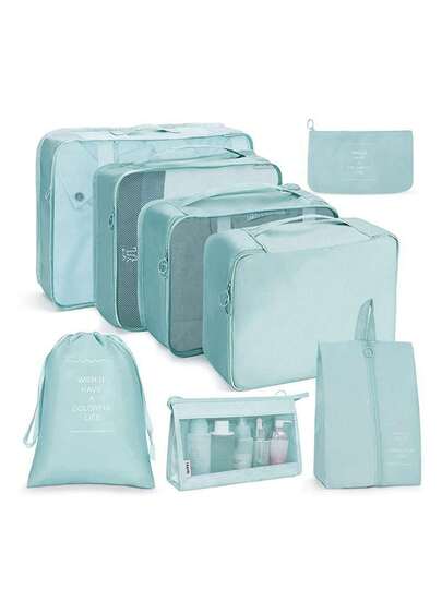 8入組尼龍衣物分類和包裝袋,旅行行李,衣物和內衣收納袋,旅行度假必備品 - 藍色 - 查看 1