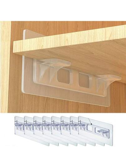 8 件/16 件易于安装的搁板支架,无需钻孔设计,耐用的塑料支架,适用于家居装饰 - 透明 - 查看 8