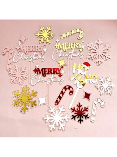 8件/24件亚克力圣诞蛋糕装饰圣诞快乐雪花新年派对蛋糕装饰套装圣诞节圣诞装饰圣诞睡衣圣诞礼物圣诞装饰 - 彩色 - 查看 10