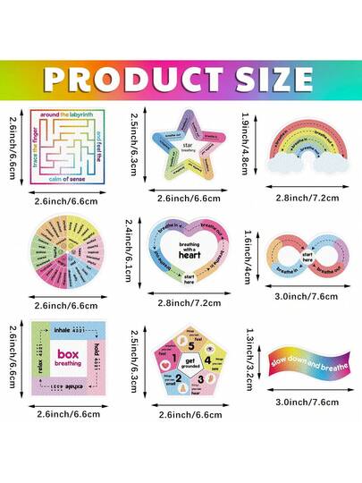 8 件/9 件/8 件套装缓解压力感官贴纸,舒缓条纹纹理贴纸,适合学生、成人感官物品舒缓贴纸 - 彩色 - 查看 10