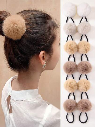 8个/套 女孩秋冬毛绒球发圈,可爱柔软弹力发绳,适合日常使用 - 彩色 - 查看 6