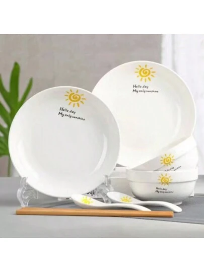 8入組家庭中式陶瓷碗盤,小太陽圖案 - 彩色 - 查看 1