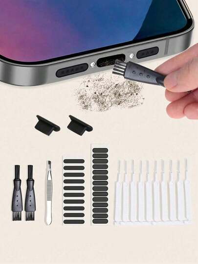 8件套:手机充电口清洁刷、耳机清洁刷、手机缝隙除尘刷、手机防尘网、防尘塞,兼容苹果手机 - 黑與白 - 查看 1