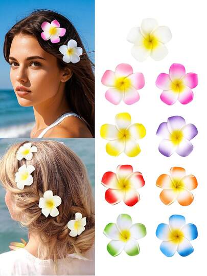 9 件装鸡蛋花发夹夏威夷热带发饰,人造鸡蛋花爪夹,女士适用,非常适合海滩派对、婚礼、夏季节日、热带度假、返校活动、发夹、发夹、学校用品 - 彩色 - 查看 1