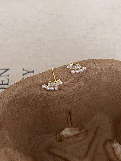 925 纯银卷翘睫毛精致耳环,配珍珠,温柔甜美风格,小巧百搭,适合女士日常佩戴 - 金色 - 查看 1
