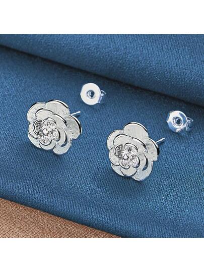 925 纯银镀玫瑰耳环 - 不含过敏原 - 优雅百搭 - 适合日常佩戴和派对 - 生日 - 感恩节 - 圣诞节 - 情人节珠宝礼物 - 銀色 - 查看 1