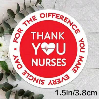 96张护士节感谢贴纸 - 红色爱心听诊器设计,“感谢医护人员”字样,1.5x1.5英寸圆形医用贴纸,医院礼品包装标签,不干胶贴纸礼品包装标签 - 圓形 - 查看 6