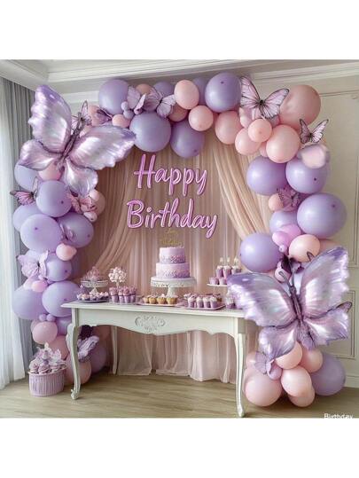 99件/115件/148件蝴蝶气球拱门套件 10英寸/5英寸马卡龙紫粉色气球配紫色蝴蝶铝箔气球 适用于母亲节生日派对装饰 - 99只蝴蝶氣球套裝 - 查看 4