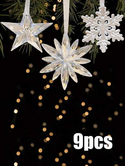 9件套浪漫透明悬挂装饰,节日装饰亚克力吊坠摆件,室内天花板吊坠,情人节生日家居装饰,圣诞节装饰,房间装饰,冬季圣诞装饰,家居圣诞礼物,圣诞装饰 - 彩色 - 查看 1