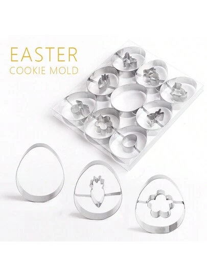 9入組304不鏽鋼復活節餅乾模具套裝,兔子蛋糕烘焙工具 - 銀色 - 查看 1
