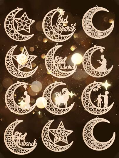 9 件/套带绳木制挂饰,斋月装饰,空心月亮星星和绵羊吊坠装饰,DIY 木制工艺品适合节日装饰、节日装饰、DIY 派对家居装饰、户外节日装饰、除夕派对装饰 - 彩色 - 查看 12
