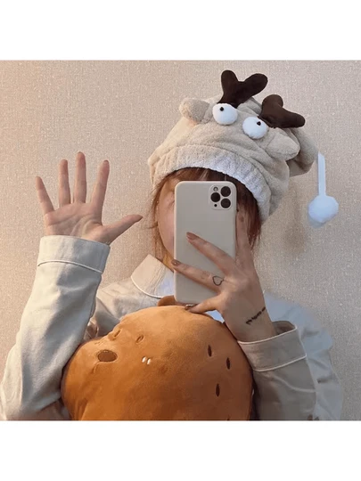 可愛頭巾立體絨幹髮帽吸水搞笑珊瑚毛巾速乾浴帽卡通頭巾帽 - 咖啡棕 - 查看 1