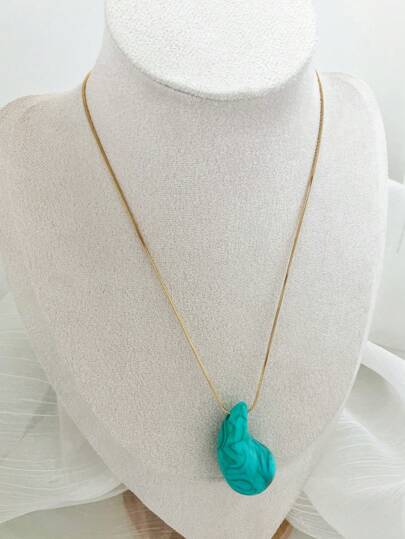 精緻壓克力淚滴項鍊適合女士約會、派對、通勤和日常佩戴作為禮物 - 藍色 - 查看 1