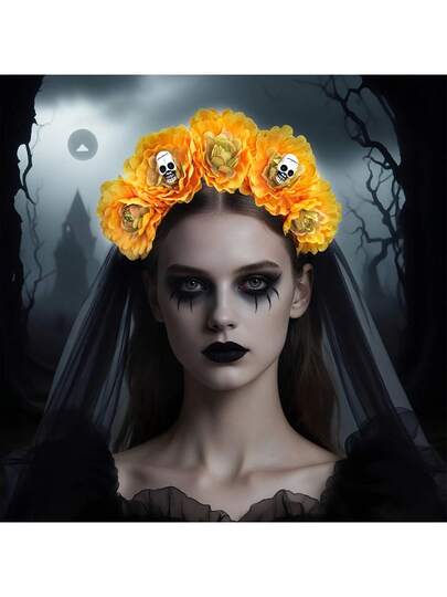 万圣节仿真花朵面纱发箍,黑色面纱连衣裙,亡灵节花朵头饰,派对恐怖头饰配饰,秋季,头发,发饰,女士发饰,旅行,发饰,女士配饰,发饰,女士发饰,美发工具,美发用品,用品,美容配饰,礼物,旅行,女士礼物,美发用品,圣诞袜填充物 - 彩色 - 查看 1